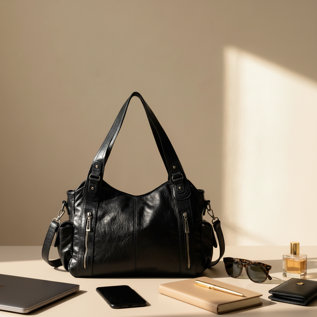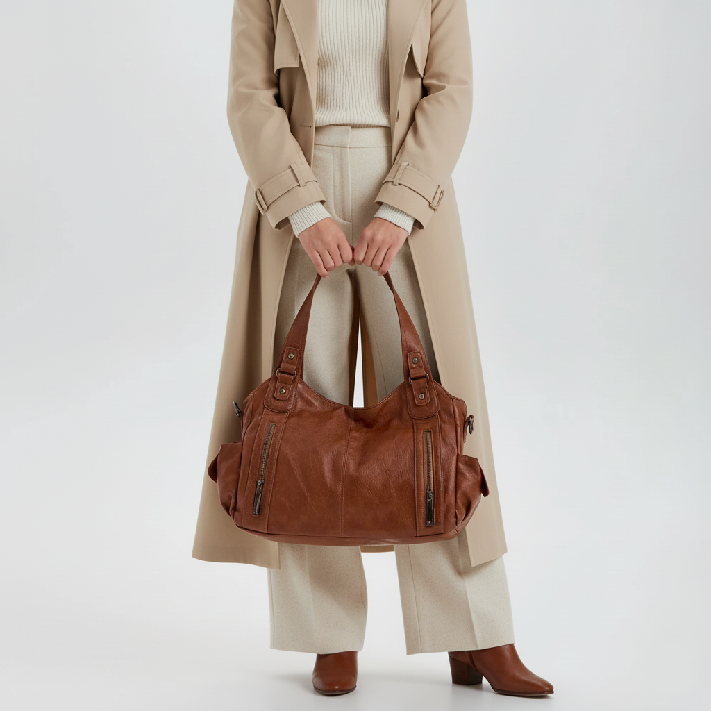 • Carried by hand, shoulder, or crossbody.